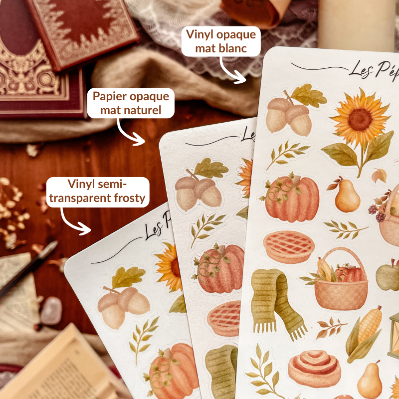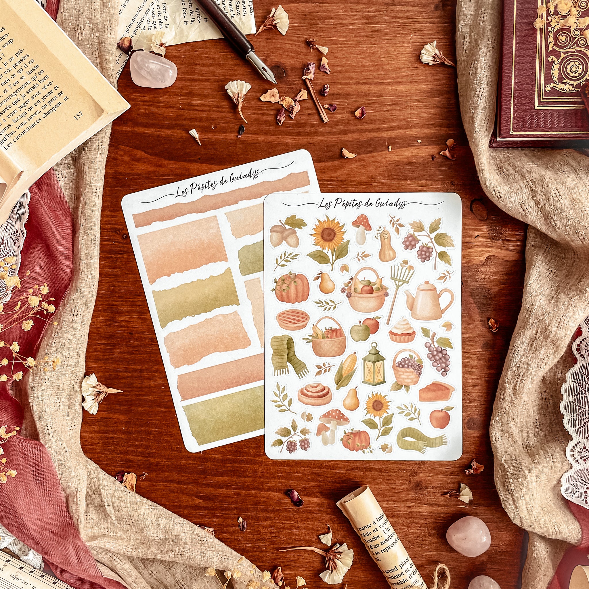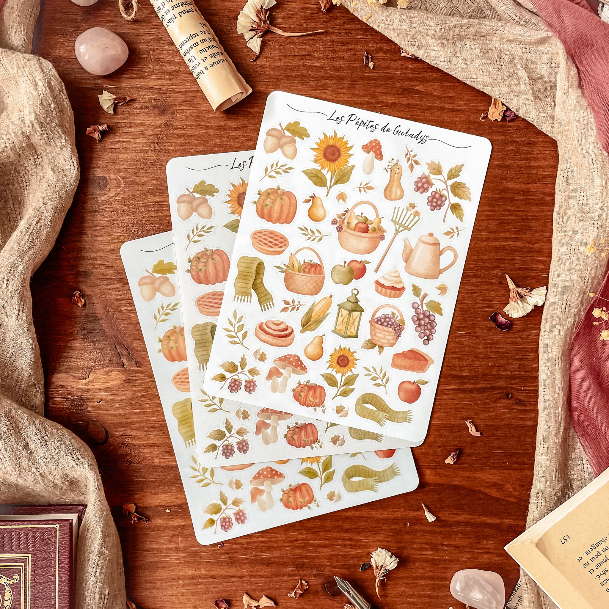 Grande planche de stickers de la collection "Automne Cosy", idéale pour la saison automnale.