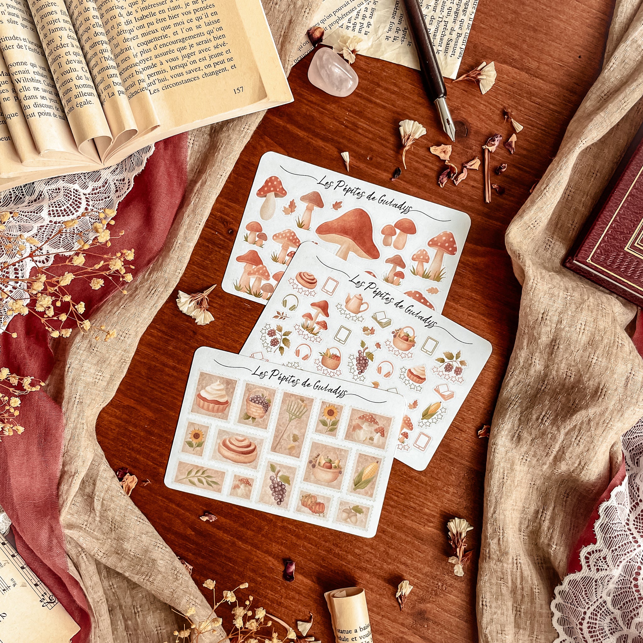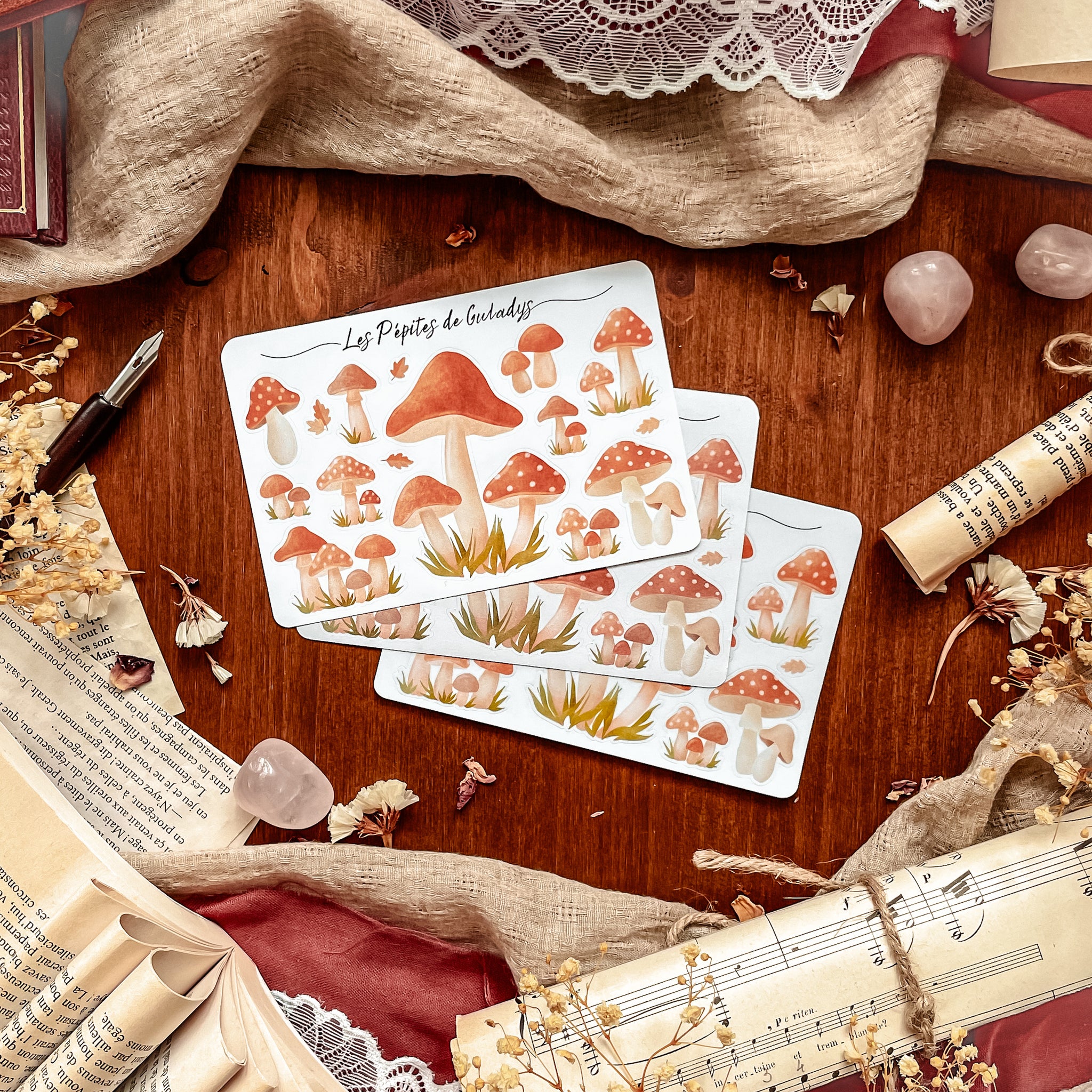 Planche de stickers de champignons de la collection 'Marché d'Automne".