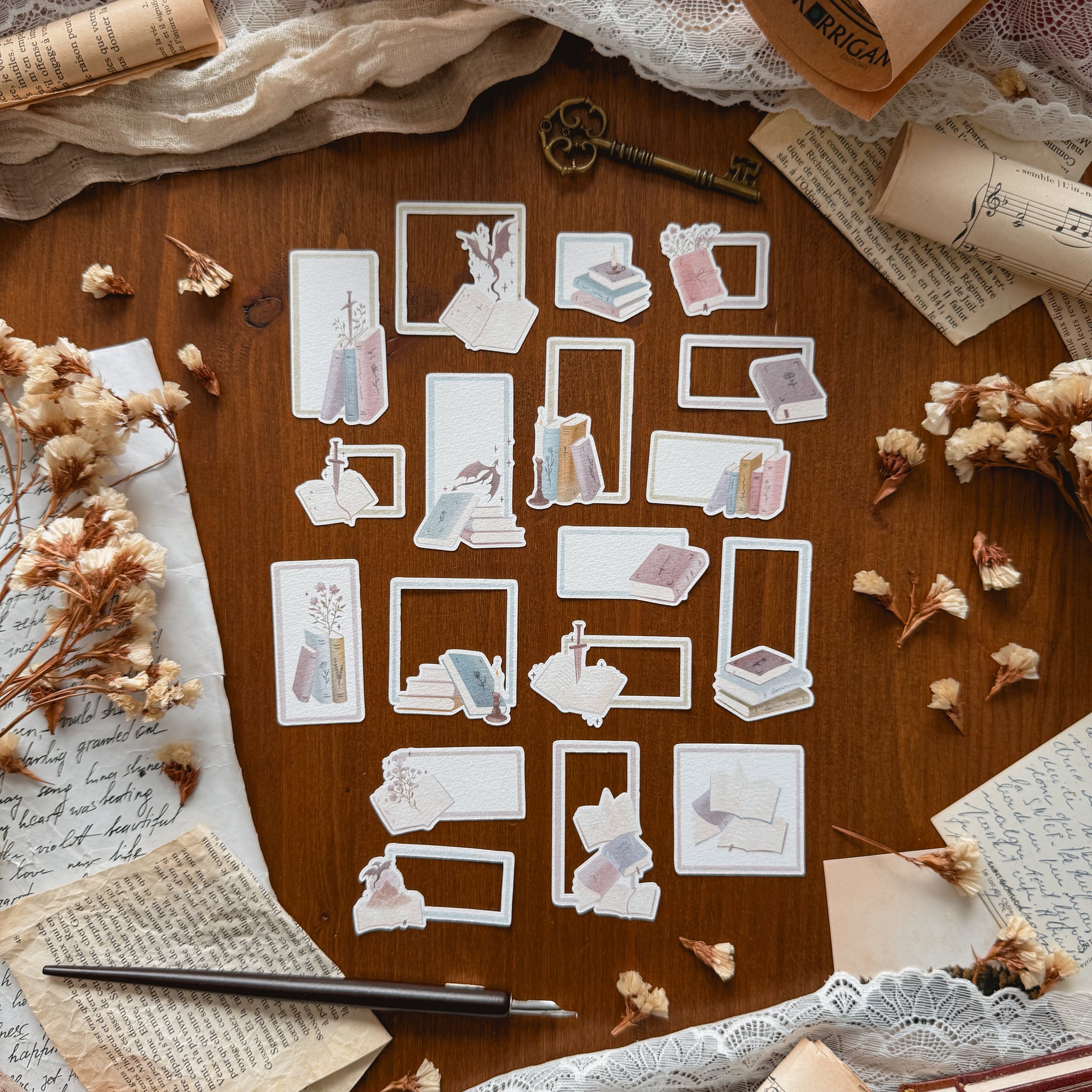 Set de cadres et encarts dans le thème "Lectures Printanières", parfait pour le scrapbooking. Papier non collant texturé 224 g/m².