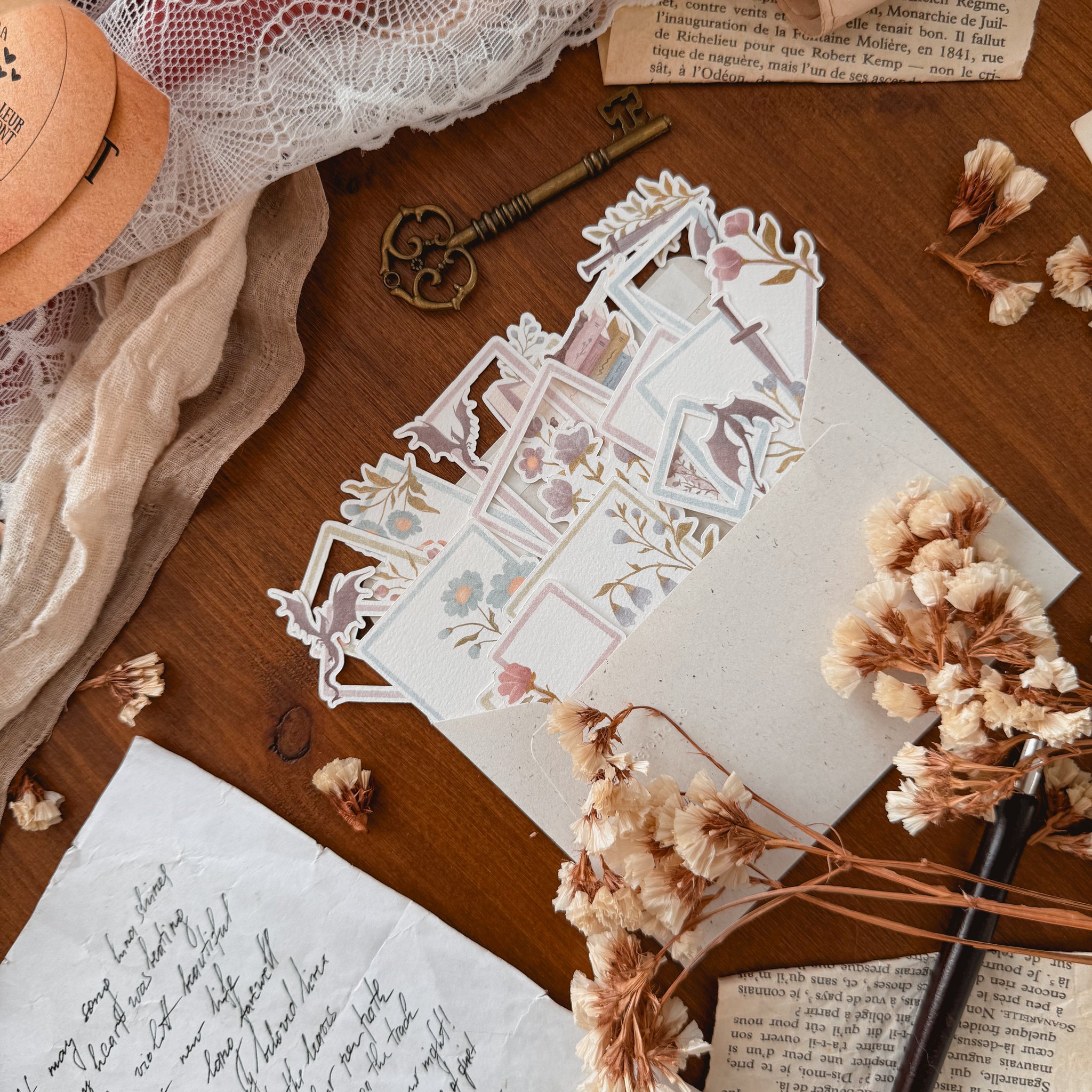Set de cadres et encarts dans le thème "Lectures Printanières", parfait pour le scrapbooking. Papier non collant texturé 224 g/m².